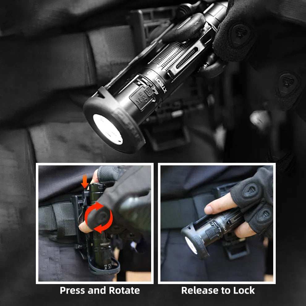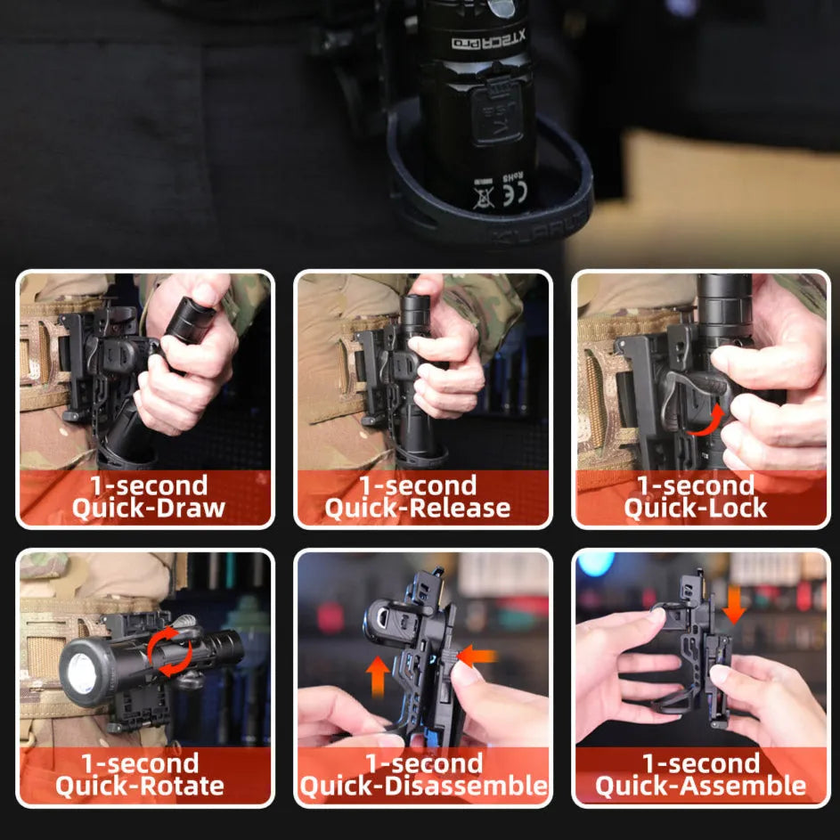 Praktisk beltehylster til Klarus lommelykter som gjør lykten lett tilgjengelig og den sitter godt. Kan festes i belte og MOLLE-system.