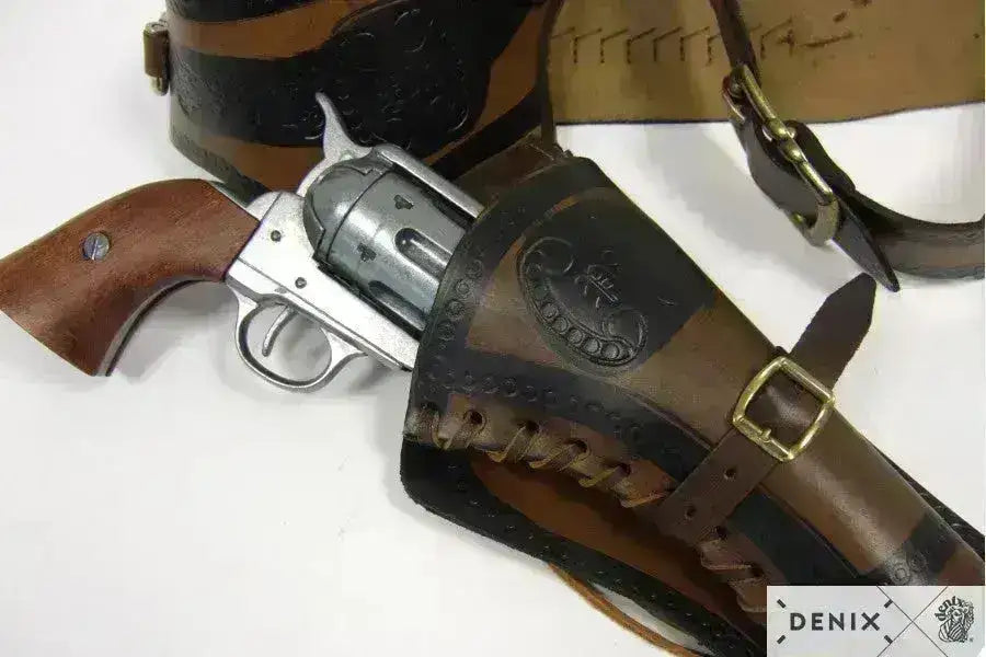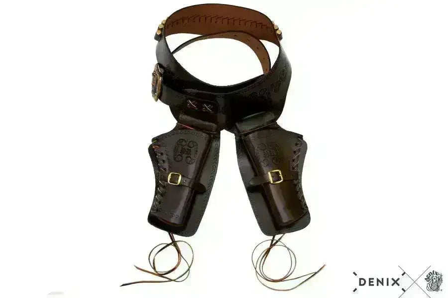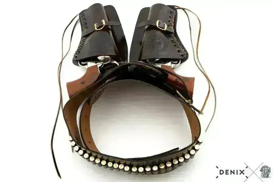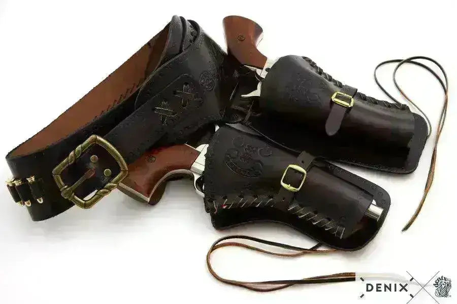 Denix Western belte med hylster for både venstre og høyre side. Laget av skinn - topp kvalitet cowboy belte!