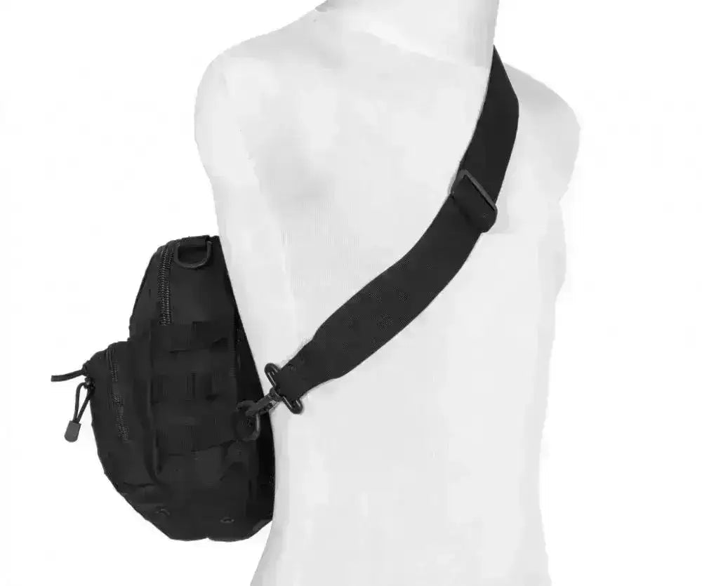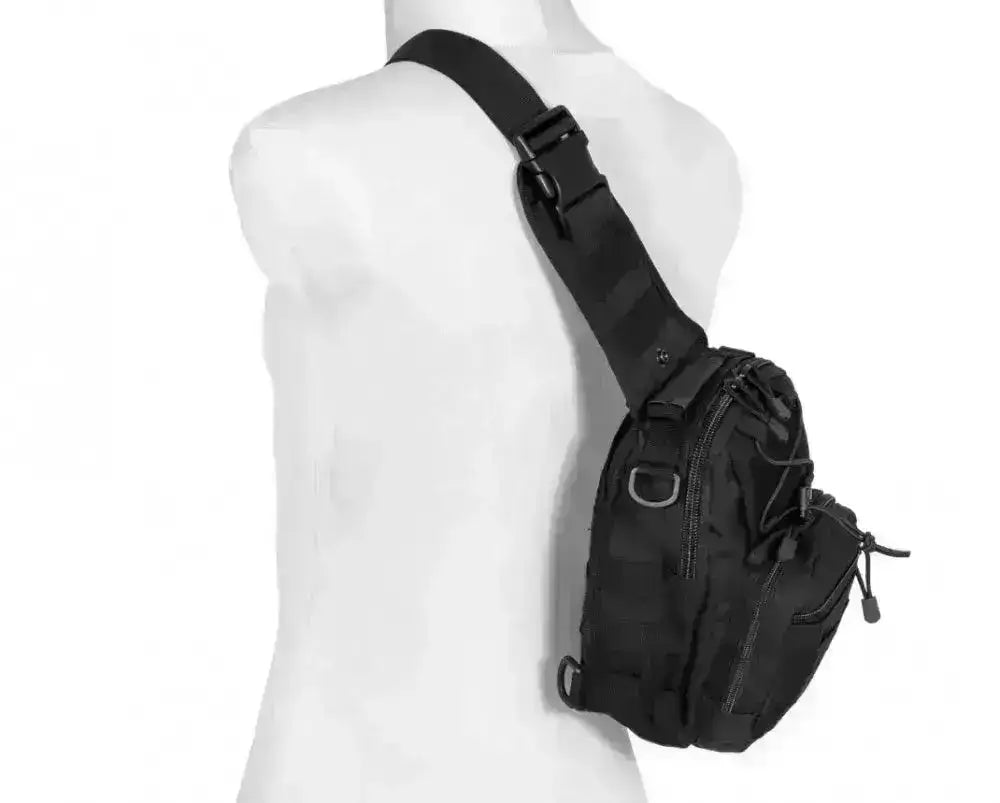 Praktisk sekk med flere rom og lommer til å organisere alt du skal ha med deg. Stroppen er festet i en kraftig D-ring som gjør det lett å feste og løsne stroppen. Du kan bytte side på stroppen.