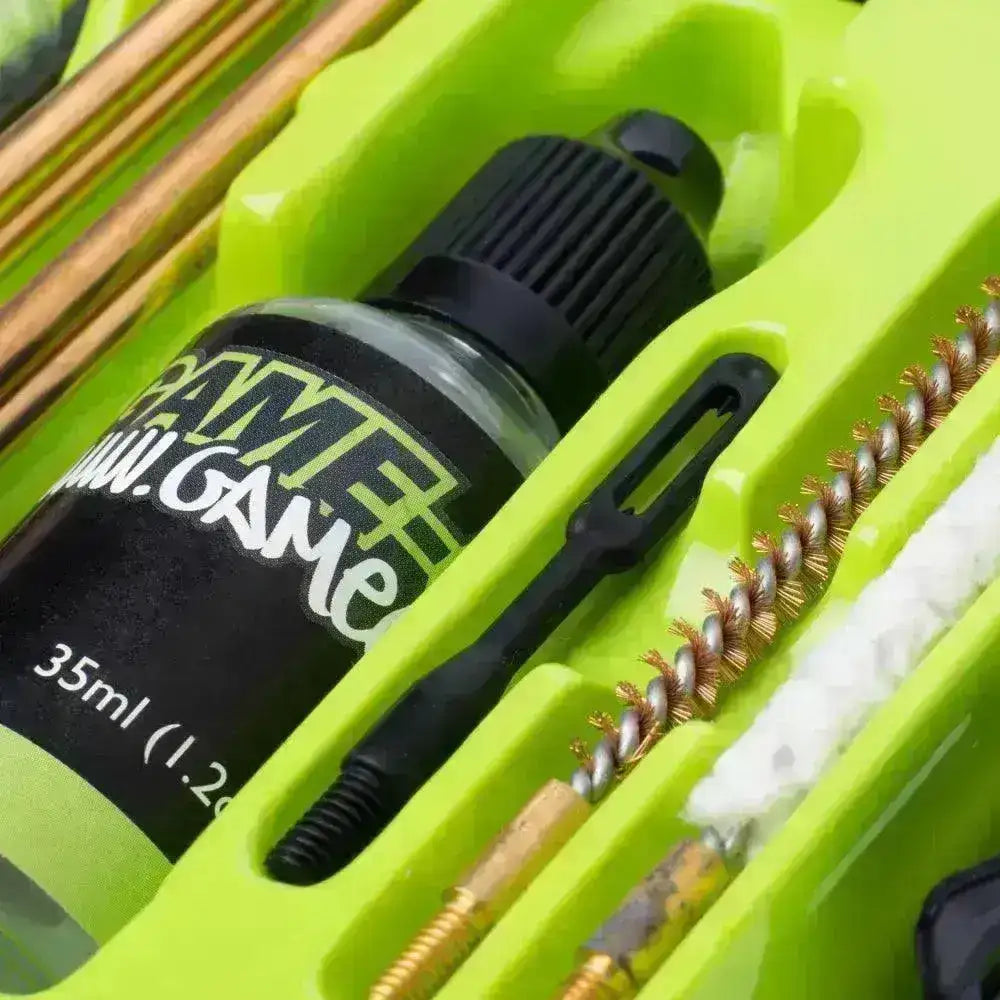 Rengjøring og vedlikehold av luftvåpenet og særlig løpet er en viktig faktor for å få god presisjon og ha et våpen som lever lenge. I denne komplette pakken får du alt av essensielt verktøy til å renset våpenet med.