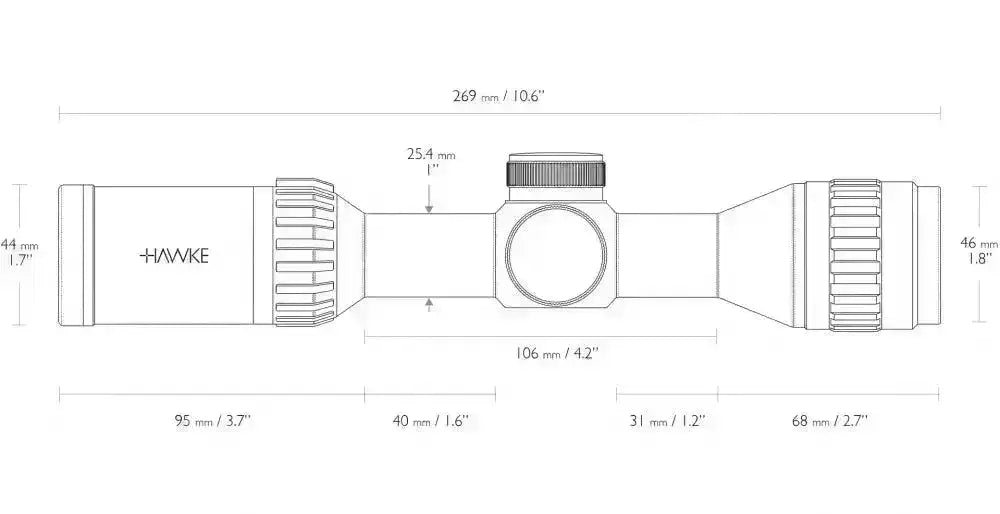 16 lags full-coating optikk for klart siktebilde. AMX retikkel etched glass som tåler mye rekyl og har parallaxjustering. Dette siktet tilbyr et meget klart siktebilde, solid konstruksjon og variabel zoom fra 2-7x.