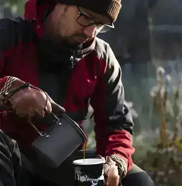 Kopp/kanne laget av anodisert aluminium, perfekt i kombinasjon med kaffe-håndkvern fra Helikon-Tex. lag kaffe ute i naturen rett i koppen. Stor nok til å lage kaffe til 2-3 personer. Filteret og koppen er lett å rengjøre og demontere.