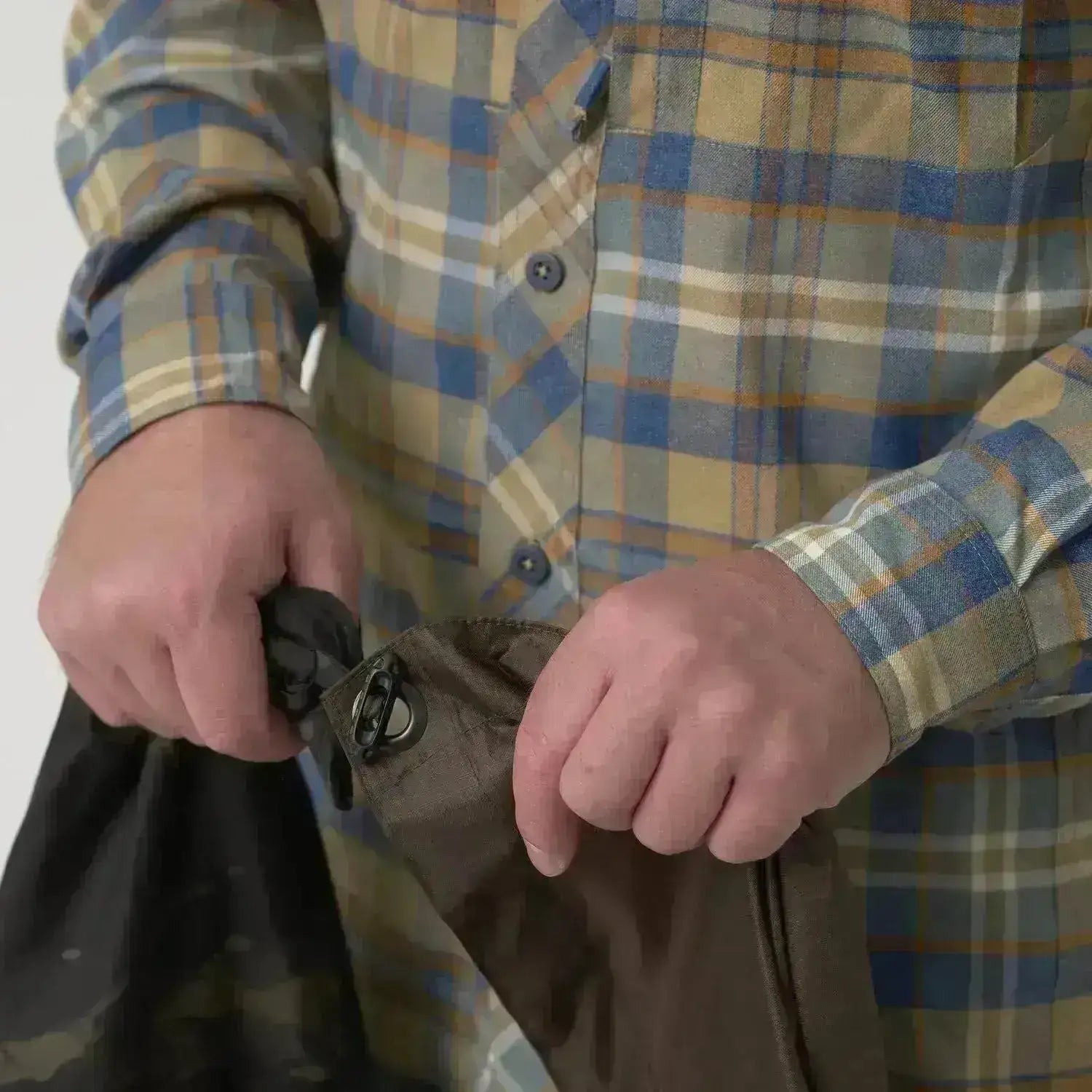 Helikon‑Tex US Model Poncho er en robust og lett regnponcho i rip-stop polyester, utviklet med fokus på funksjonalitet for friluft og taktiske situasjoner. Materialet er vanntett og hurtig­tørkende, med limte sømmer og reflekterende trykknapper og metallmaljer for ekstra slitestyrke.