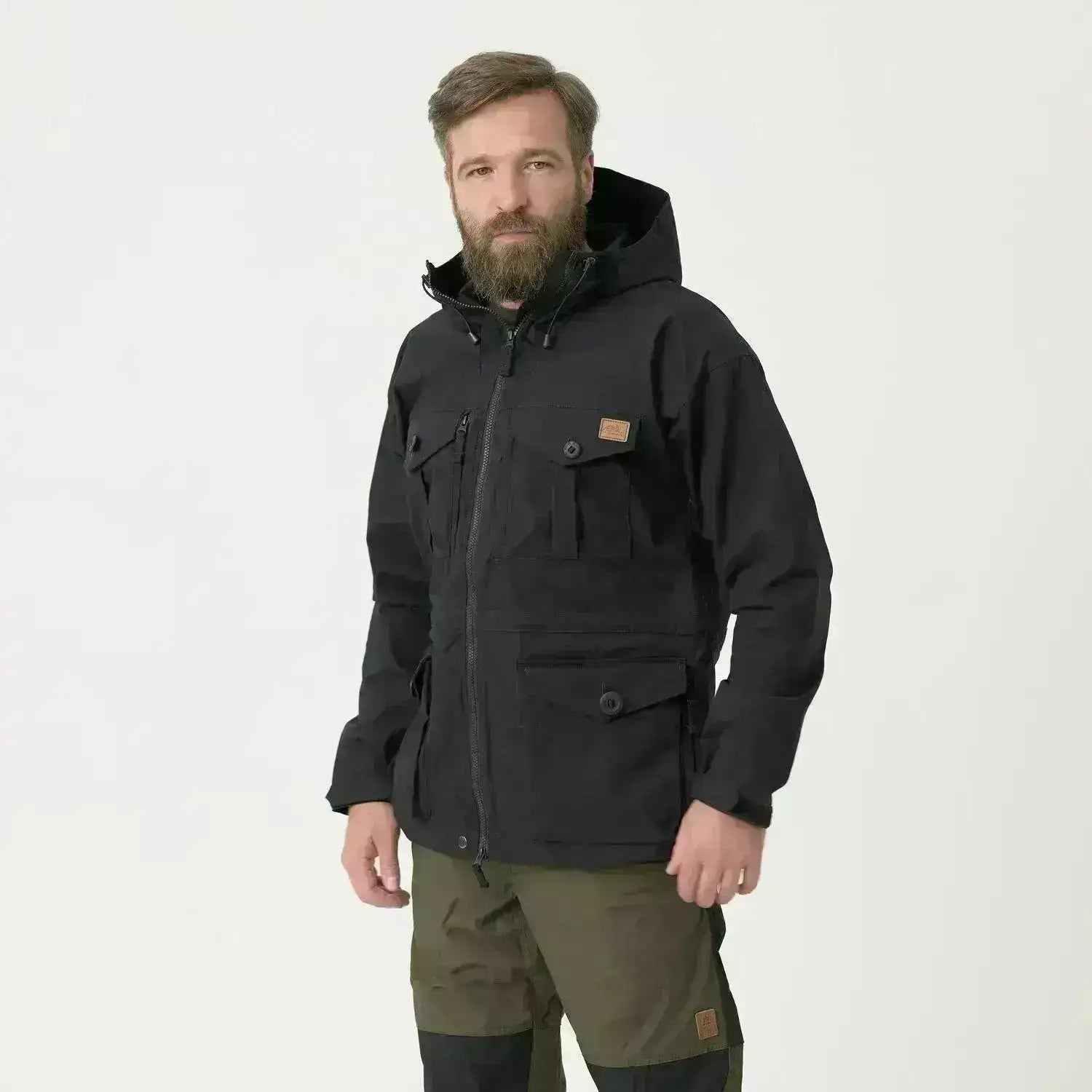 Helikon-Tex sin SAS Smock er en oppdatert utgave av den klassiske militærjakken, designet for både taktisk bruk og bushcraft. Den er laget av slitesterkt Duracanvas-materiale som kan vokses for økt beskyttelse mot lett regn og snø. Denne smocken fyller gapet mellom to av Helikon-Tex sine anorakker: den tyngre Pilgrim Jacket og den lettere Woodsman Jacket. Den lette konstruksjonen og justeringsmulighetene gjør jakken svært allsidig og egnet for alle værforhold fra sommer til vinter.