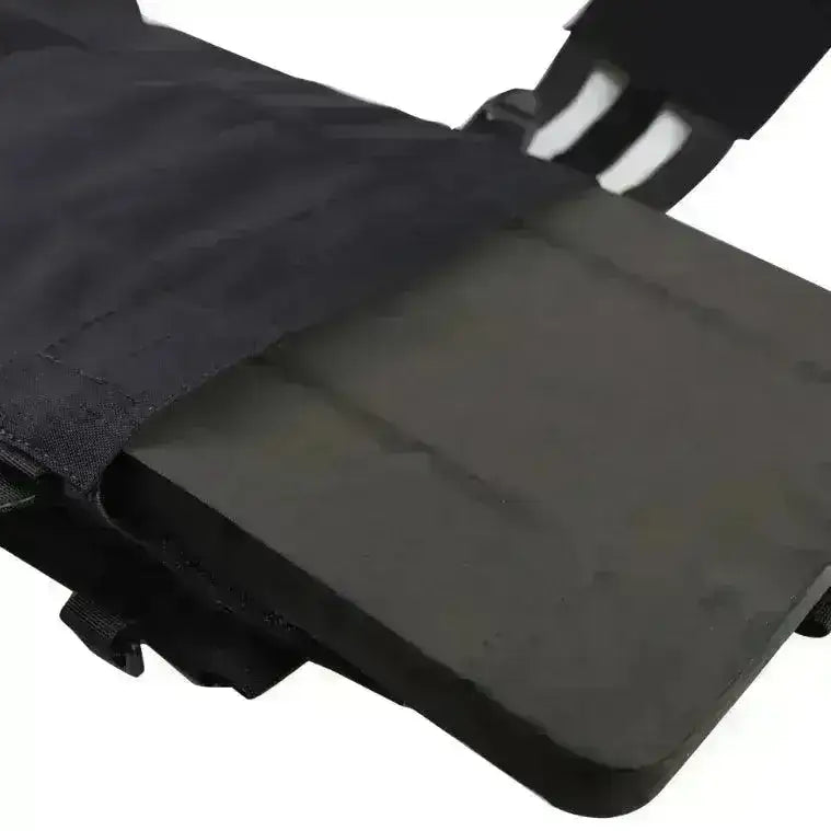 Denne taktiske vesten kommer med dummy plates som lett kan fjernes eller byttes ut med tyngre plates.
