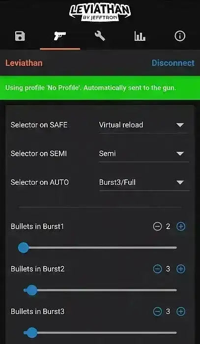 - Virtuell "low cap" instilling lar deg velge antall skudd og tvinge våpenet til å slutte å skyte når du når 0
