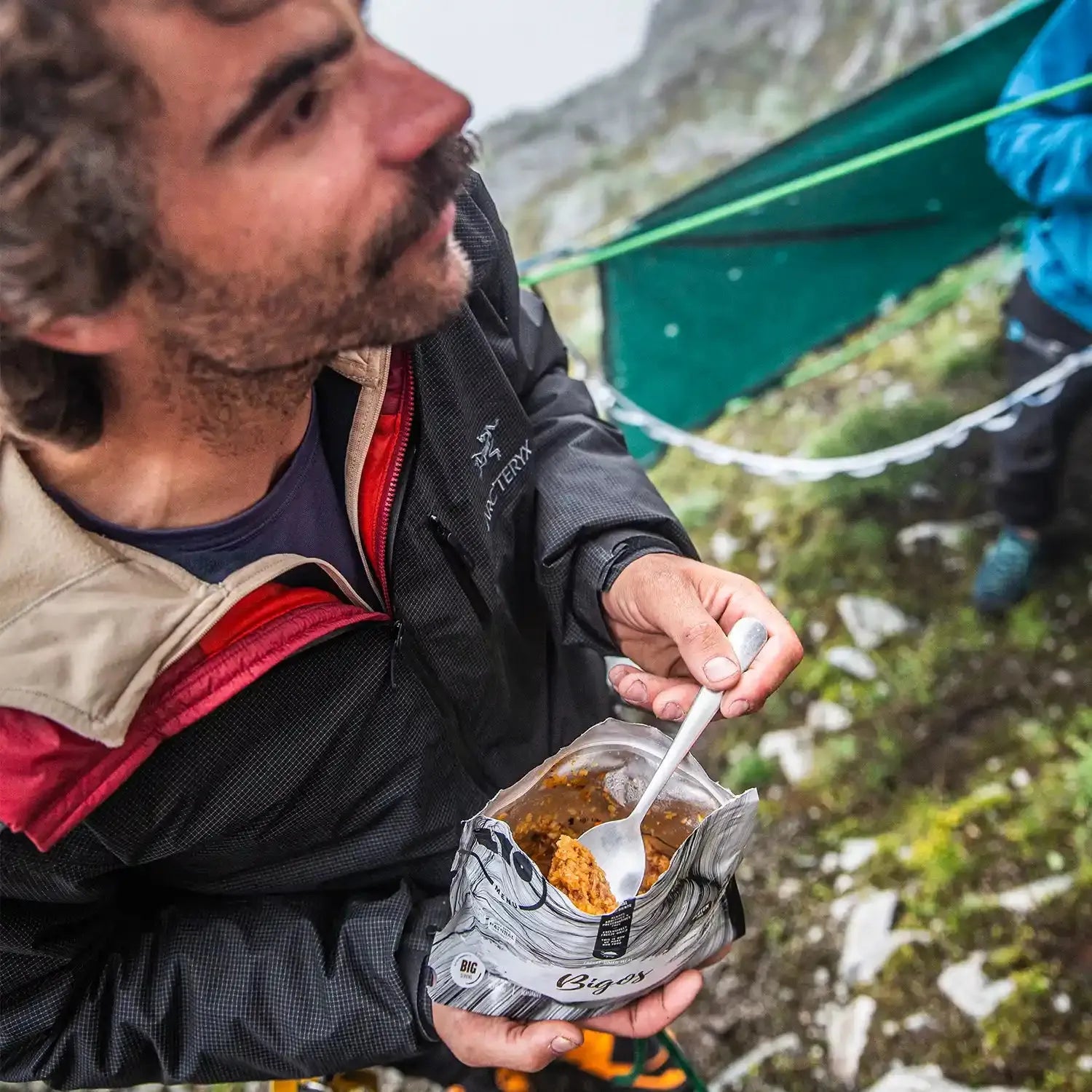 Hell varmt vann direkte i posen, rør godt og vent noen minutter – så har du en varm og næringsrik middag klar uansett hvor du befinner deg.