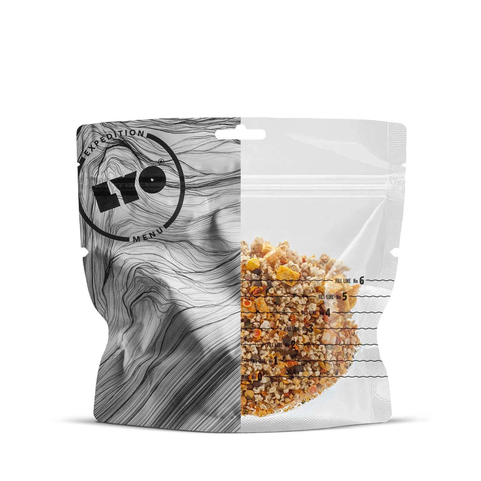 LYOFOOD Indisk Linsedal gir deg en aromatisk og næringsrik rett basert på røde linser, kokosmelk og ekte indiske krydder. Perfekt for deg som ønsker et vegetarisk og melkefritt alternativ på tur. Frysetørket for ekstremt lav vekt og lang holdbarhet – klar for ekspedisjoner, camping og eventyr i villmarken.