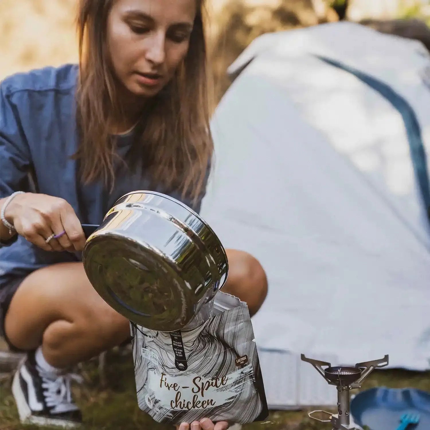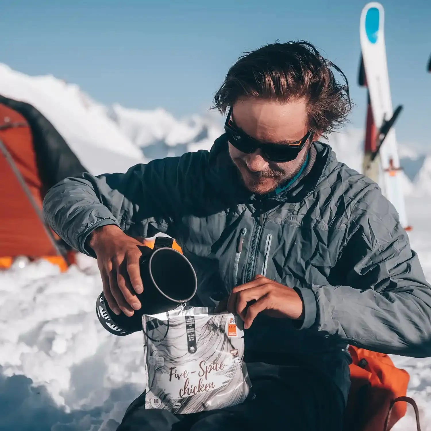 Tilsett kokende vann i posen, rør godt og la retten stå i 8–10 minutter. Nyt et næringsrikt måltid hvor som helst på turen.