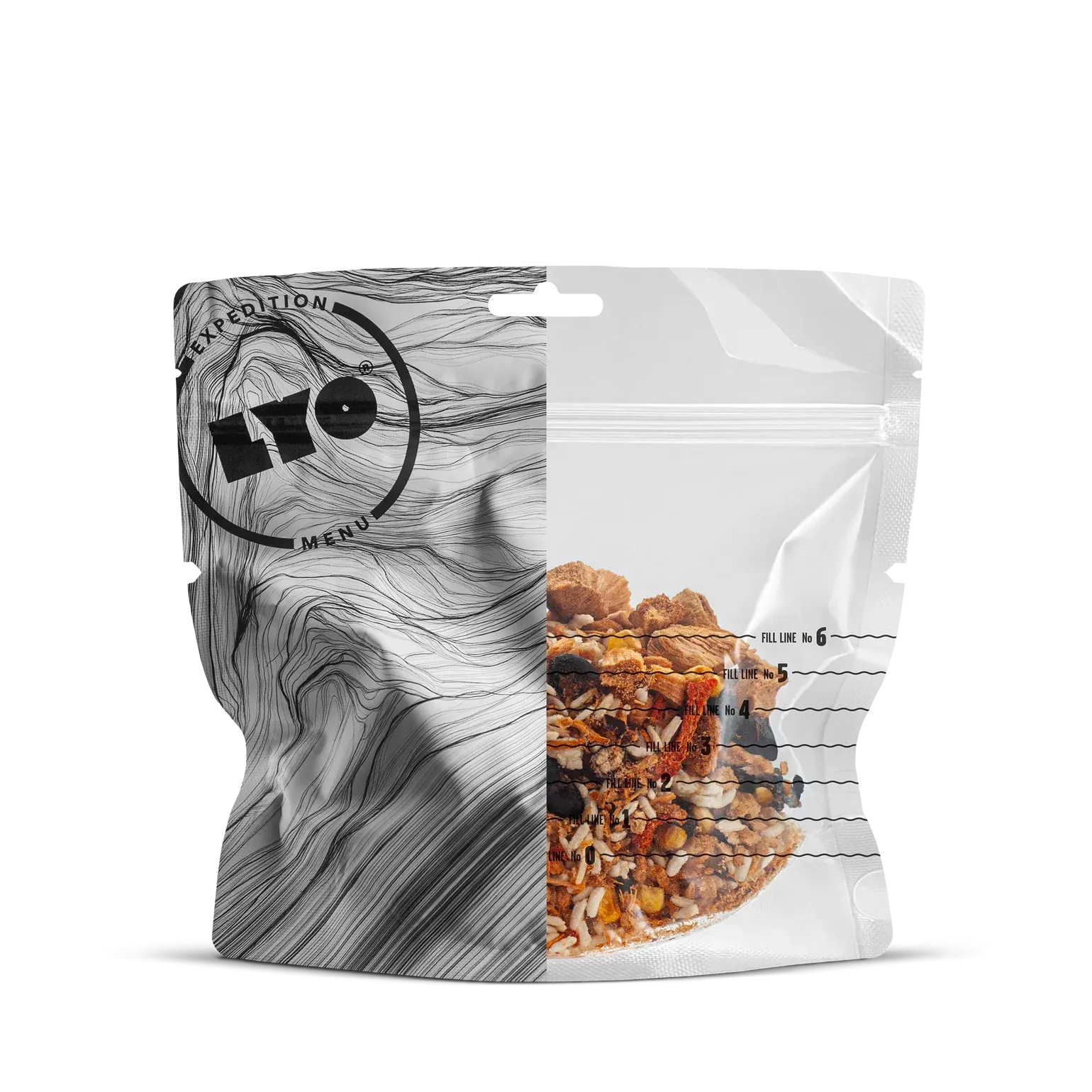 Få en varm og mettende opplevelse med LYOFOOD Mexicansk gryte. Denne frysetørkede retten kombinerer bønner, ris, mais, paprika og krydret tomatsaus for å gi deg ekte meksikansk smak på tur. 100 % naturlige ingredienser, ingen kunstige tilsetningsstoffer, lav vekt og lang holdbarhet. Perfekt for fjellturer, ekspedisjoner og campinger der du ønsker god mat på en enkel måte.