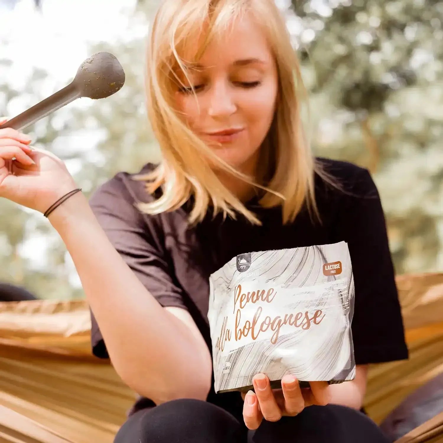 LYOFOOD Penne alla Bolognese er en autentisk italiensk-inspirert pastarett med penne og fyldig bolognesesaus. Laget med storfekjøtt, tomater, gulrot og urter, og helt fri for kunstige tilsetningsstoffer. Denne retten gir deg ekte matopplevelse på tur, med lav vekt og høy smakskvalitet. Perfekt for fjell, ekspedisjoner eller basecamp – hvor du vil ha varm og ekte middag raskt og enkelt.