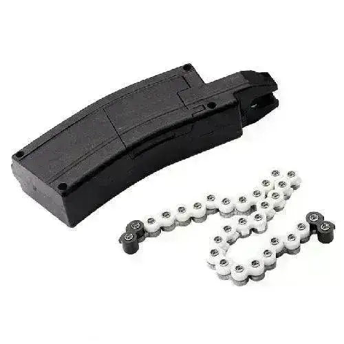 Her har du ekstra magasin til Sig Sauer sine MPX og MCX 4.5mm Pellets modeller! Magasinet er likt det som følger med og rommer 30 kuler. Det følger også med 3stk "belter"