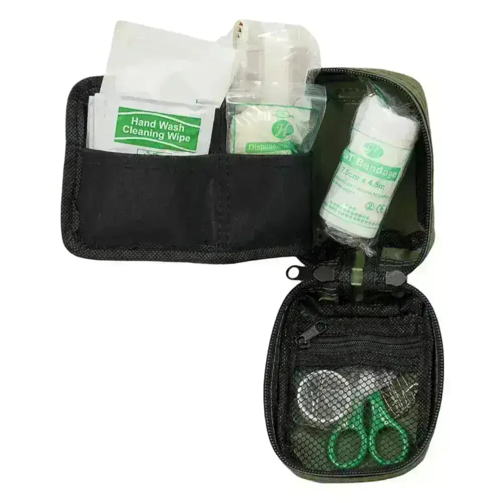 Mini førstehjelpspakke inneholder nødvendige forsyninger for å behandle mindre sår raskt. Denne pakken er vannavstøtende og lett, noe som gjør den ideell for bruk i feltet.