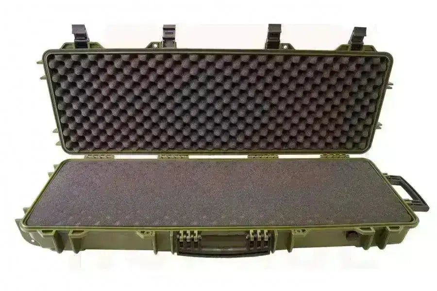 Denne kofferten fra kjente Nuprol er designet for å gi din rifle ypperlig beskytelse. Kofferten er IP67 "Dust & Water Proof", noe som vil si at den så og si er helt vanntett og beskytter ypperlig mot støv. Det gjør igjen at du ikke trenger å vær redd for at elektronikk eller stålet skal bli ødelagt om det skulle komme regn når du har riflen i kofferten. Denne utgaven her som har en indre størrelse på hele 101cm kommer også med PNP (Pick N Pluck) skum. Det vil si at du kan formstøpe skummet med å ta ut små biter av skummet for å forme den etter rifla og utstyret du skal ha. Dette er en meget genial og hendig funskjon som gjør at rifla ligger enda sikrere.