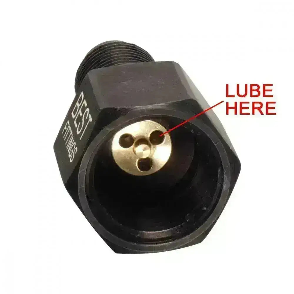 - Det anbefales å gi noen få dråper med silikon i adapteret mellom hver fylling (Se bilder) IKKE overfyll med olje!