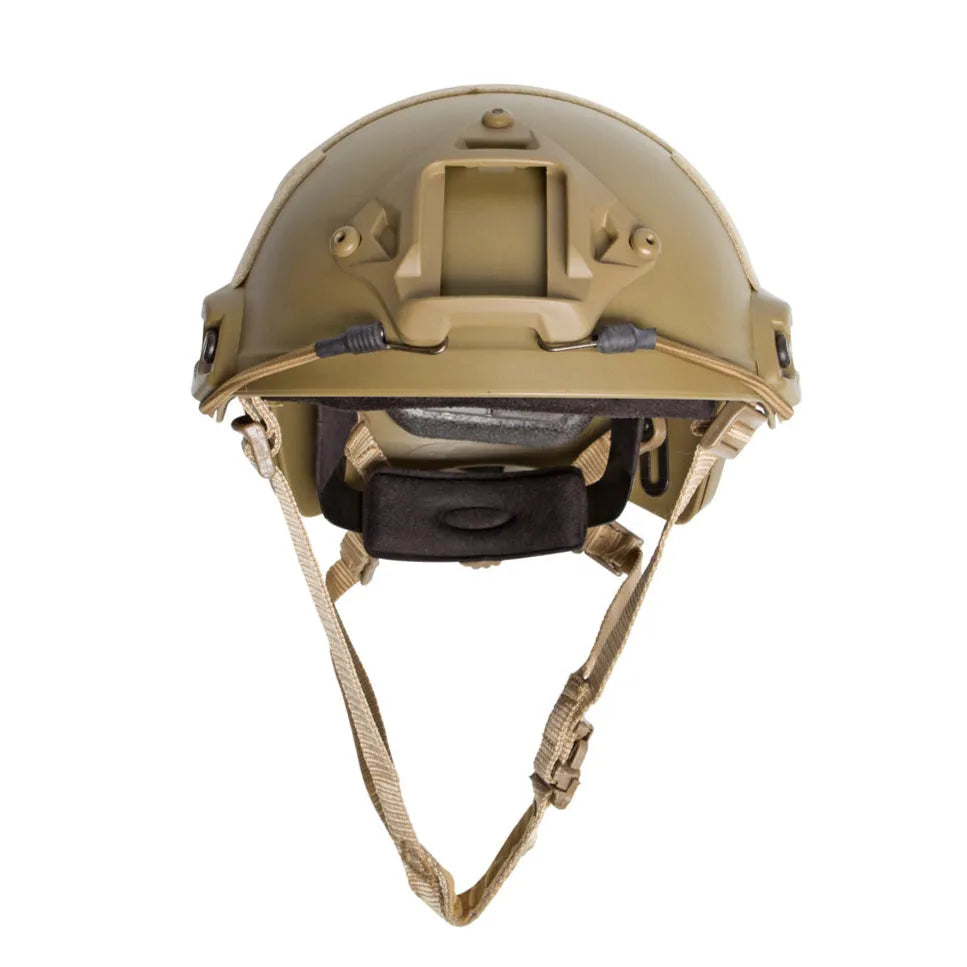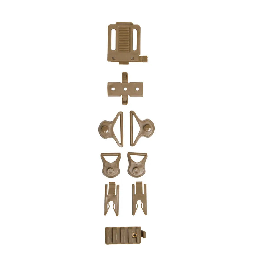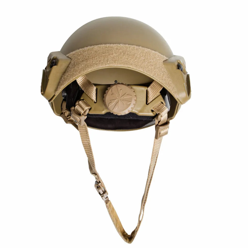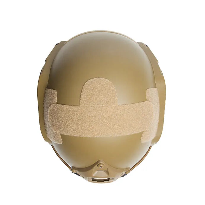 Det finnes et hav av muligheter for å feste tilbehør på hjelmen. Med rails på begge sider, kan du montere lykt, laser, kamera eller briller her. Det kommer med diverse braketter for å feste forskjellig utstyr. Fremme på hjelmen er det også feste for NVG, nattsynsbriller. Denne er stabilisert med to strikker, for å gjøre det mer behaglig å gå med.