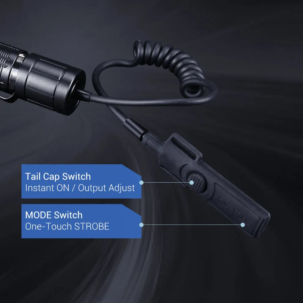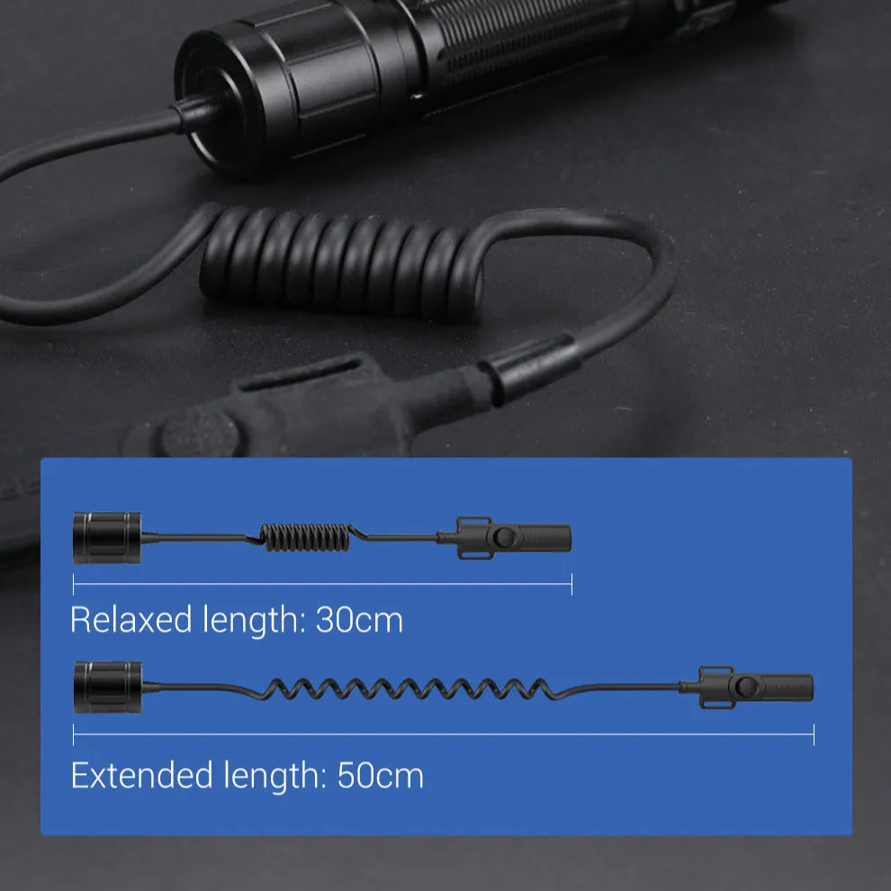 Trykkpute til Klarus lykt XT11GT PRO og XT2CR PRO. Trykkputa har kabel som strekker seg 30cm til 50cm og kommer med 21mm adapter slik at den kan festes rett på 21mm rail.