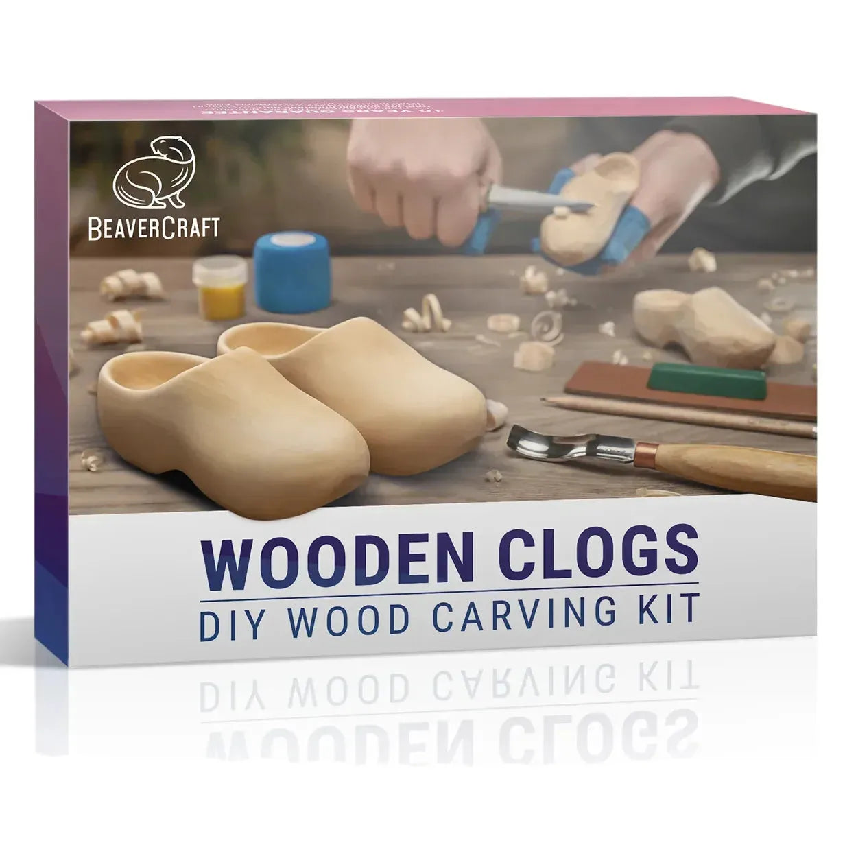 Opplev gleden ved treskjæring med DIY10 wooden clogs carving kit fra BeaverCraft. Dette settet gir deg alt utstyret du trenger for å lage dine egne, autentiske tresko til dekorasjon!