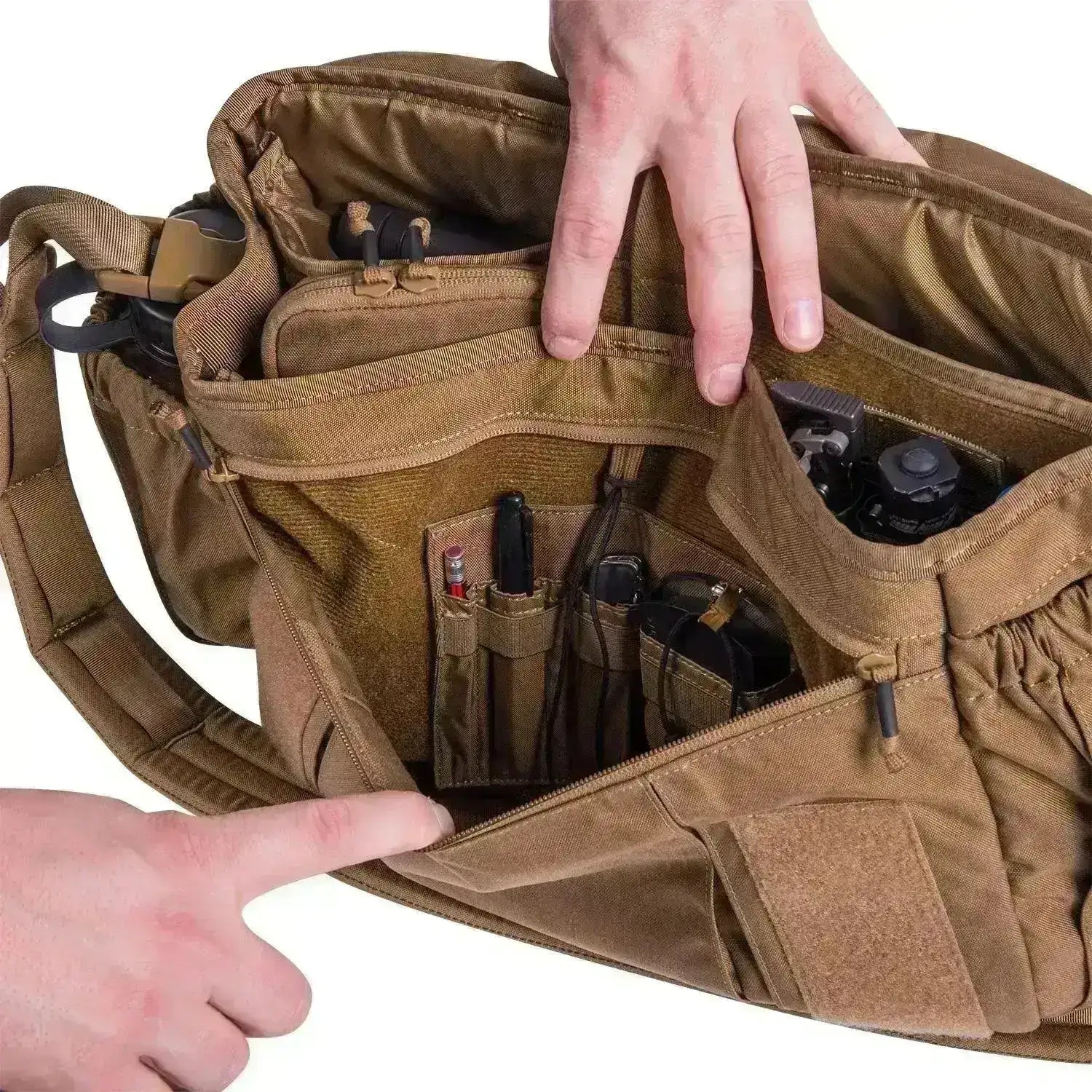 Våre designere har lagt spesiell vekt på den interne utformingen av lommene og kamrene i byvesken. En separat, foret og borrelåslukket lomme beskytter en bærbar datamaskin sikkert. Glidelåslommen under klaffen inneholder en borrelåsplate som er kompatibel med Versatile Insert System. En egen glidelåslomme på utsiden av klaffen gir tilgang til ofte brukte gjenstander uten å måtte åpne klaffen. Borrelåsplaten kan brukes til personalisering.