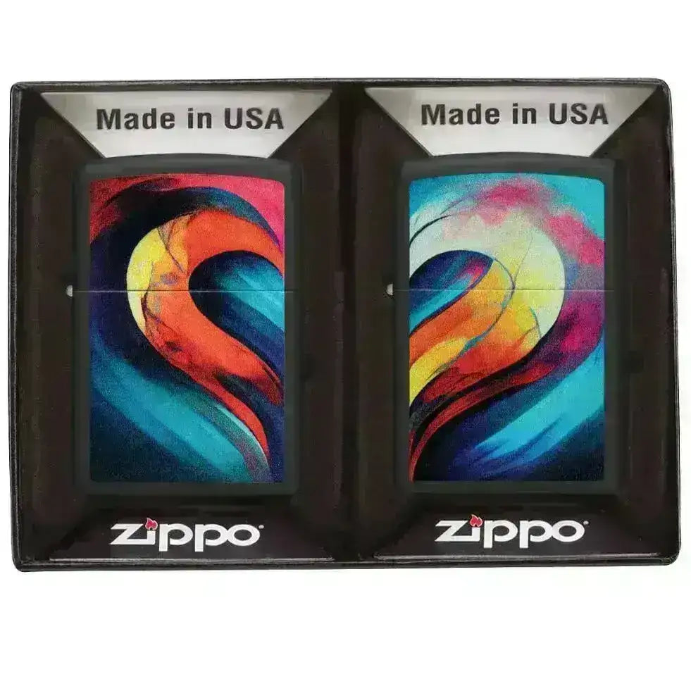 Dette romantiske lighter-settet fra Zippo inneholder to Black Matte lightere som sammen danner et komplett hjerte. Designet på disse lommelyktene er både slitesterkt og stilfullt, og er et perfekt symbol på en kjærlighetsgave. Hver lighter har Zippos ikoniske "klikk"-lyd og kommer i en flott gaveeske. Husk å fylle med Zippo lighterbensin for optimal ytelse.