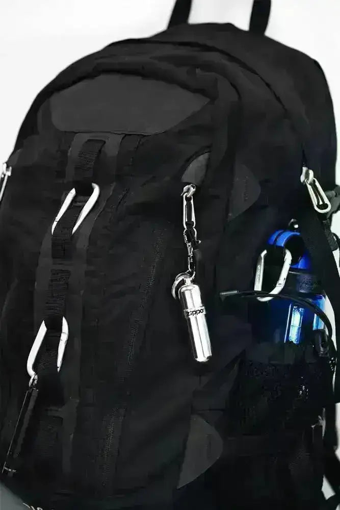Sammen med kapselen får du en nøkkelring, krok, verktøy til å skifte Zippo flint med samt en gummi oppbevaringsrom for ekstra flint.